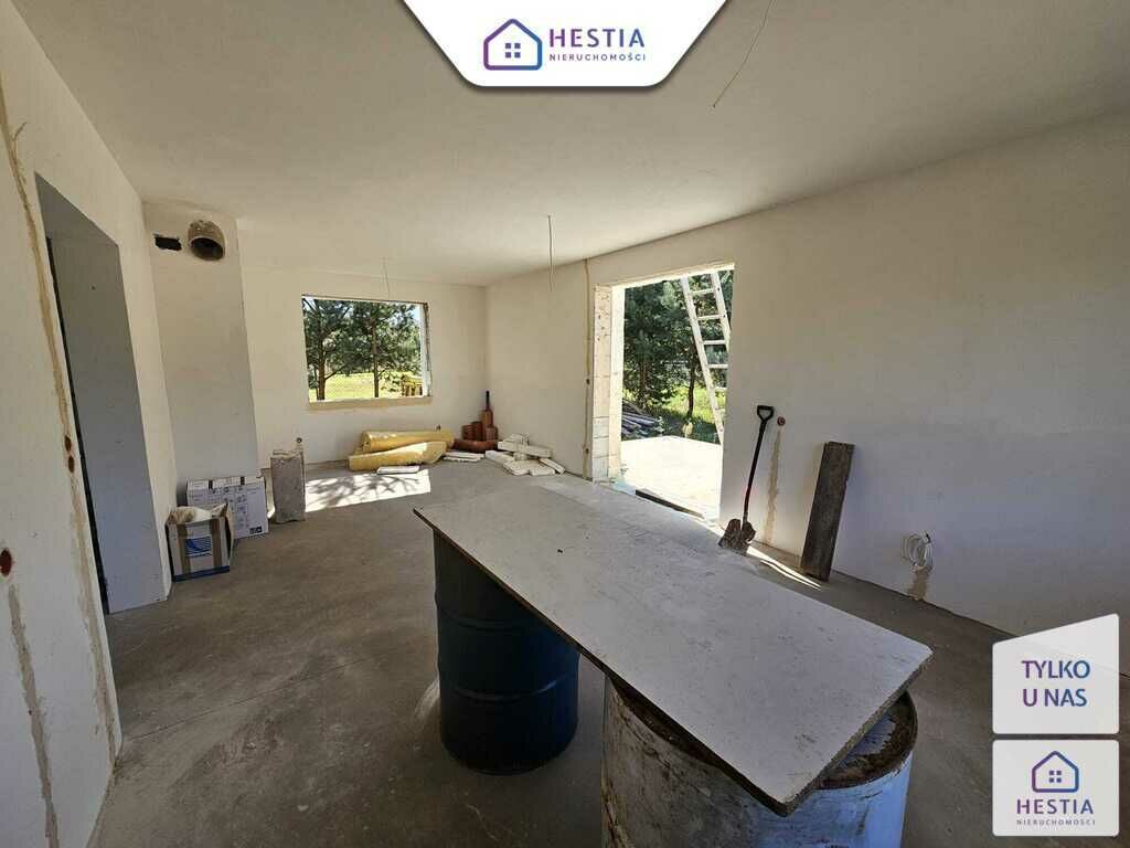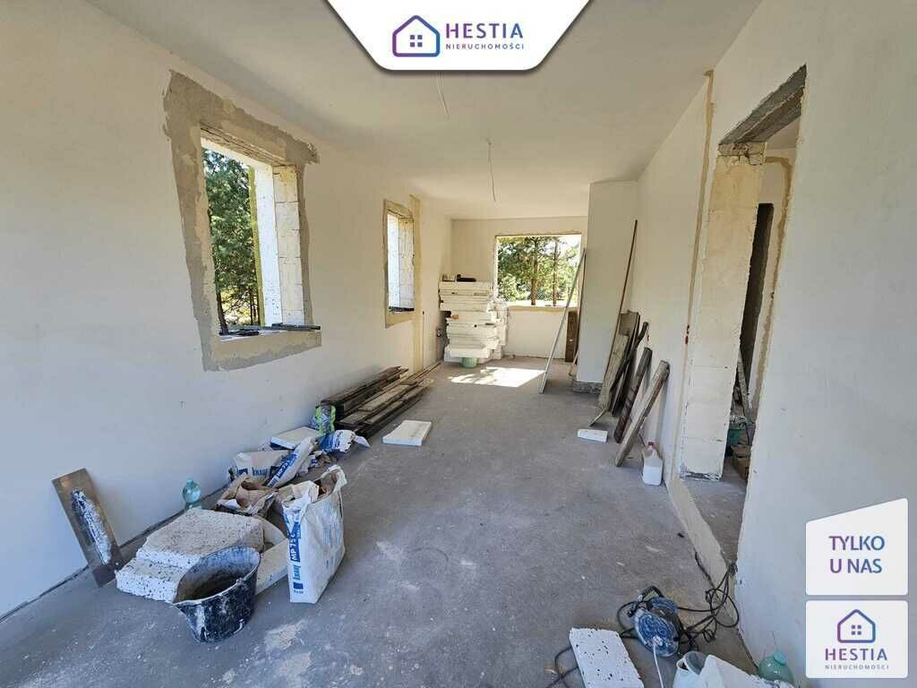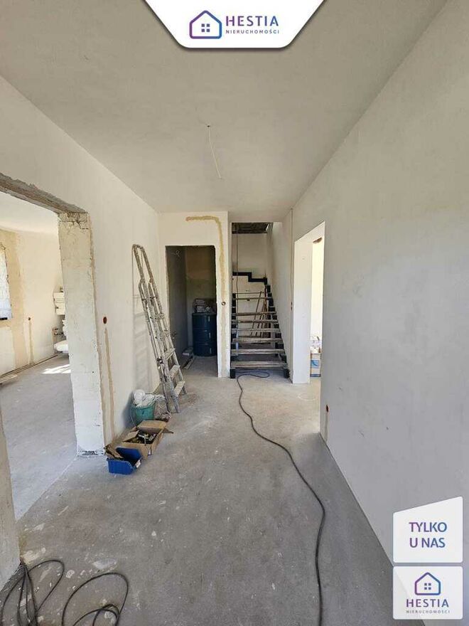 Wewnątrz wykonane tynki oraz wylana podłoga